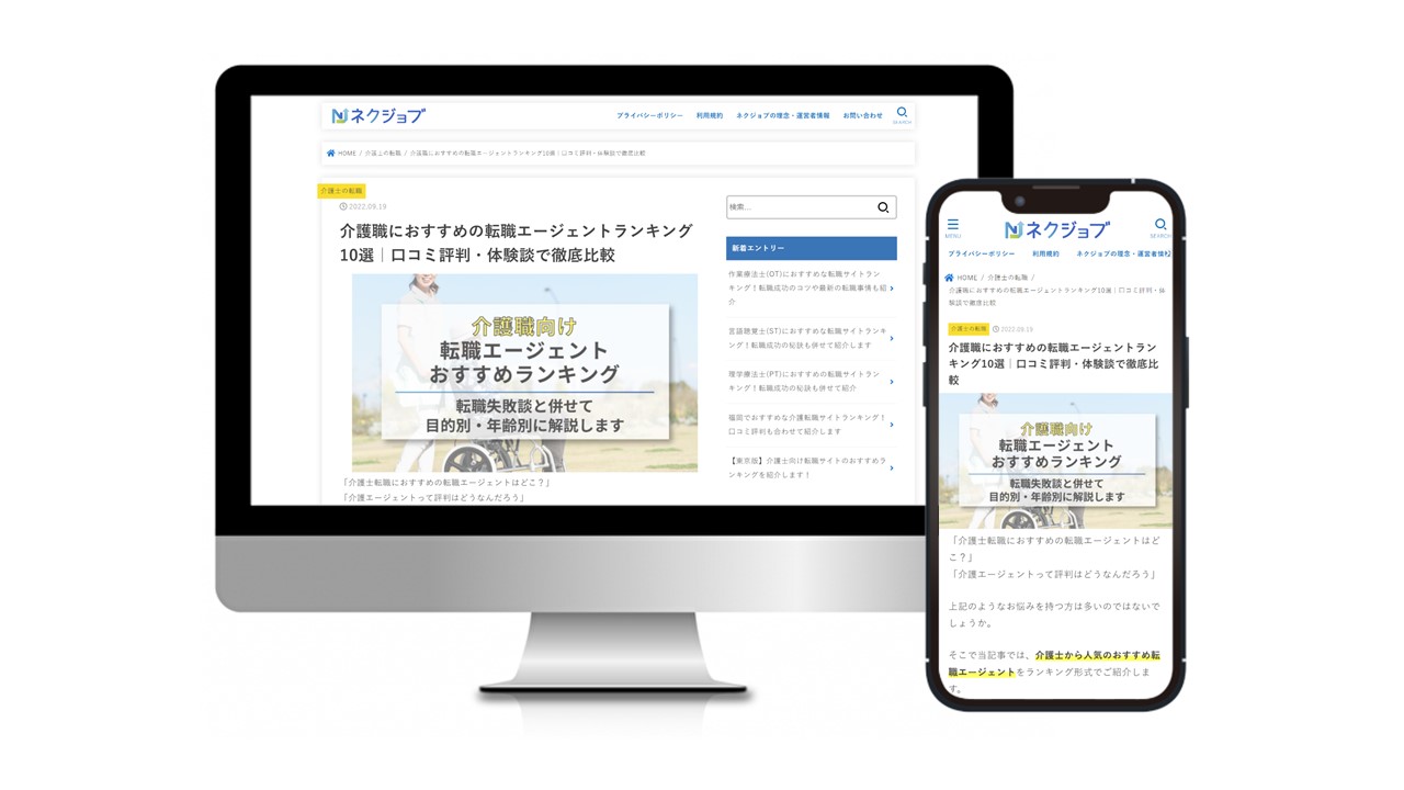 転職エージェント紹介サイトの「ネクジョブ」でウィルオブ介護が紹介されました。