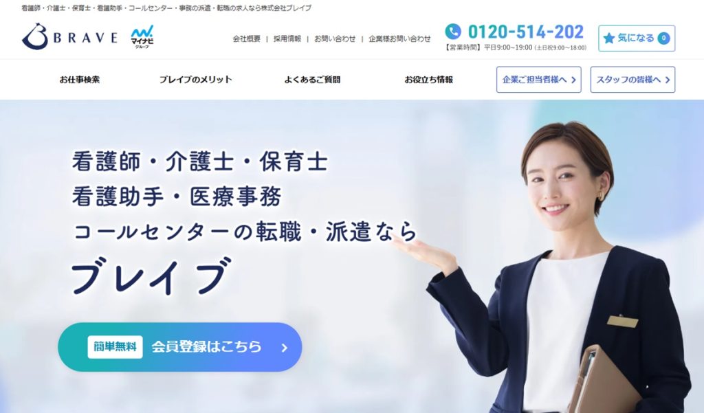 ブレイブ介護士は、マイナビグループの株式会社ブレイブが運営する介護派遣サービスです。