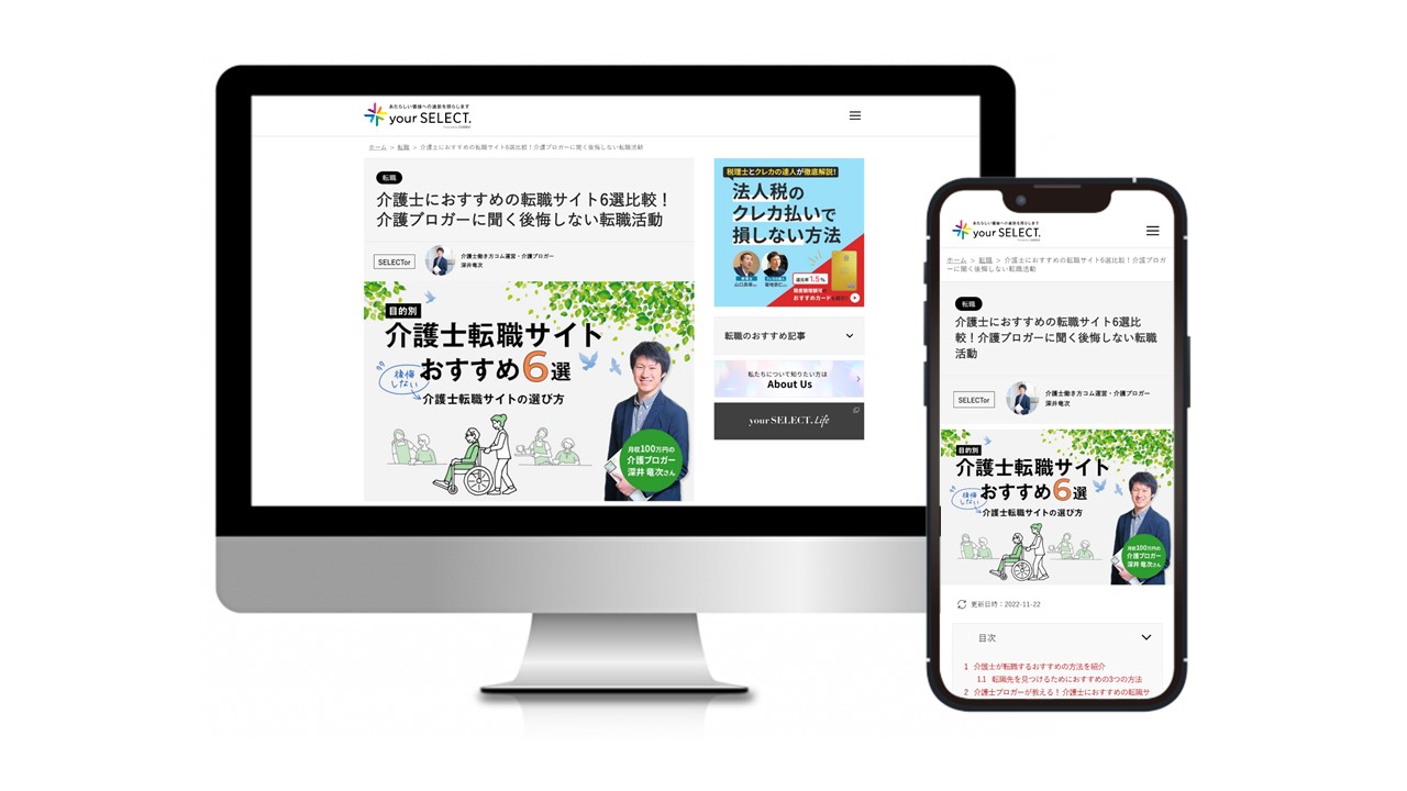 転職エージェント紹介サイトの「your SELECT.」でウィルオブ介護が紹介されました。