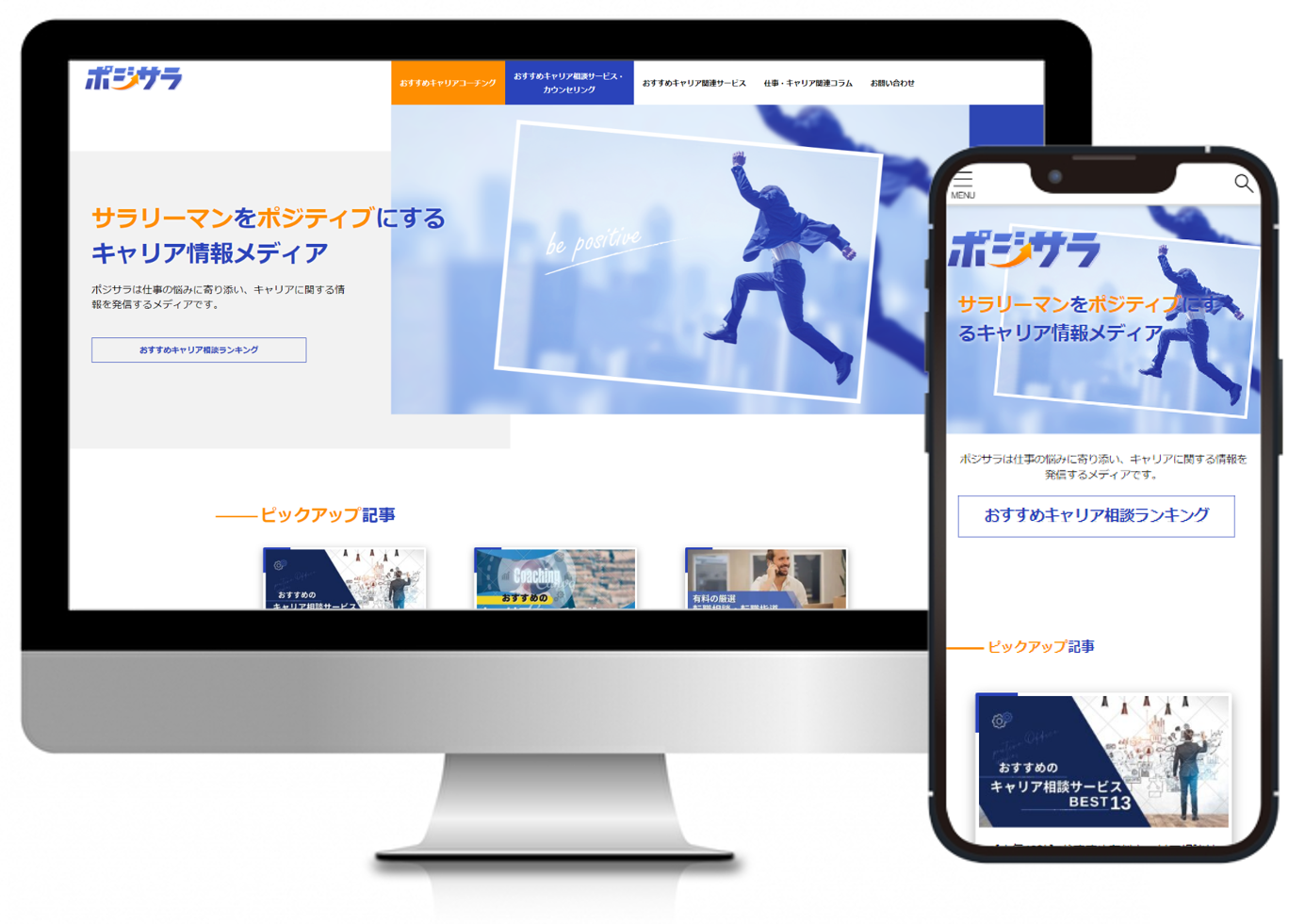 こちらのサイトは、「サラリーマンをポジティブにするキャリア情報メディア」と題して、サラリーマンに向けておすすめの転職サイトや転職エージェント、キャリアコーチングなどのサービスを紹介しています。