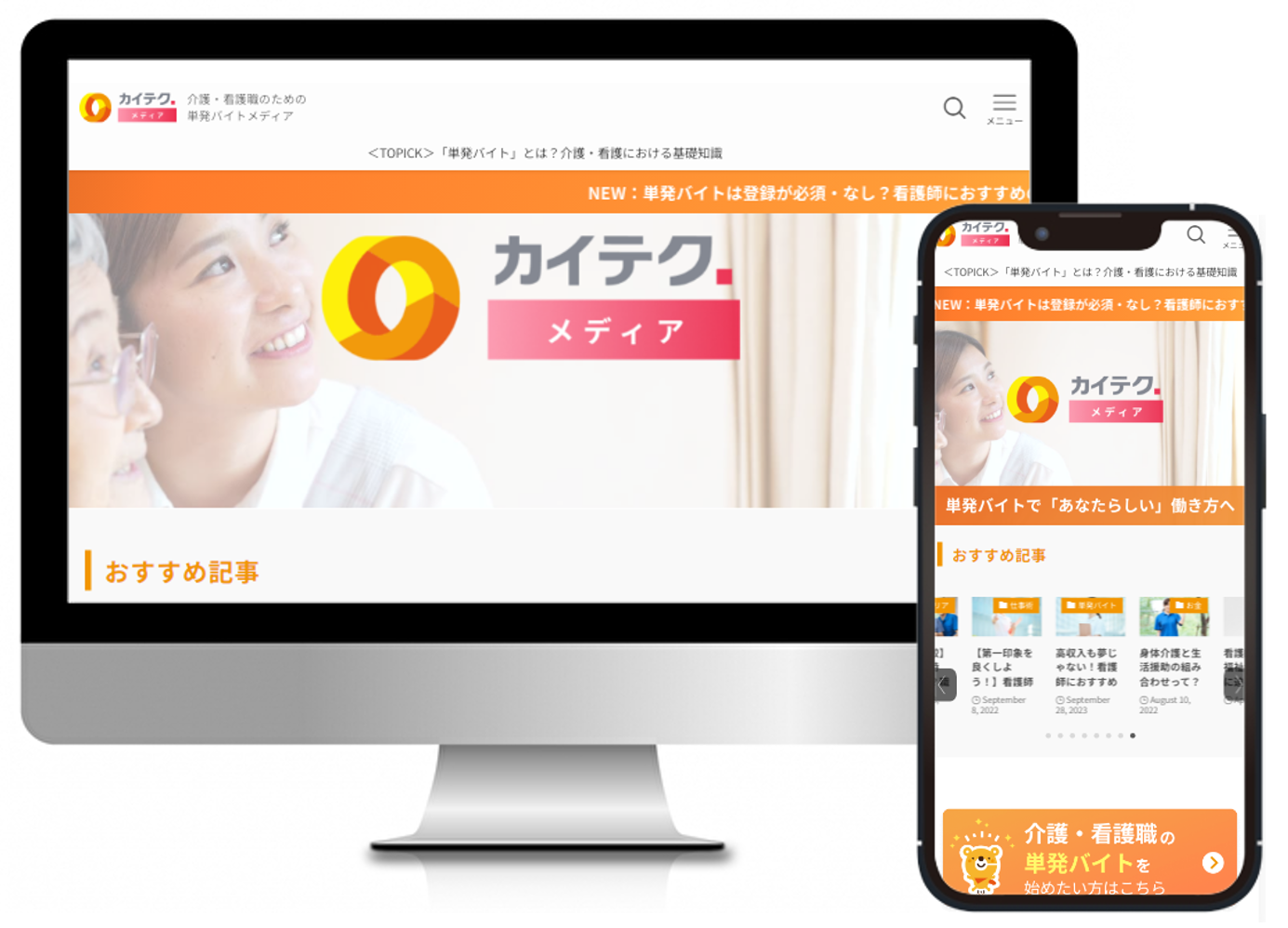 介護・看護職のための単発バイトメディア「カイテクメディア」でウィルオブ介護が紹介されました。